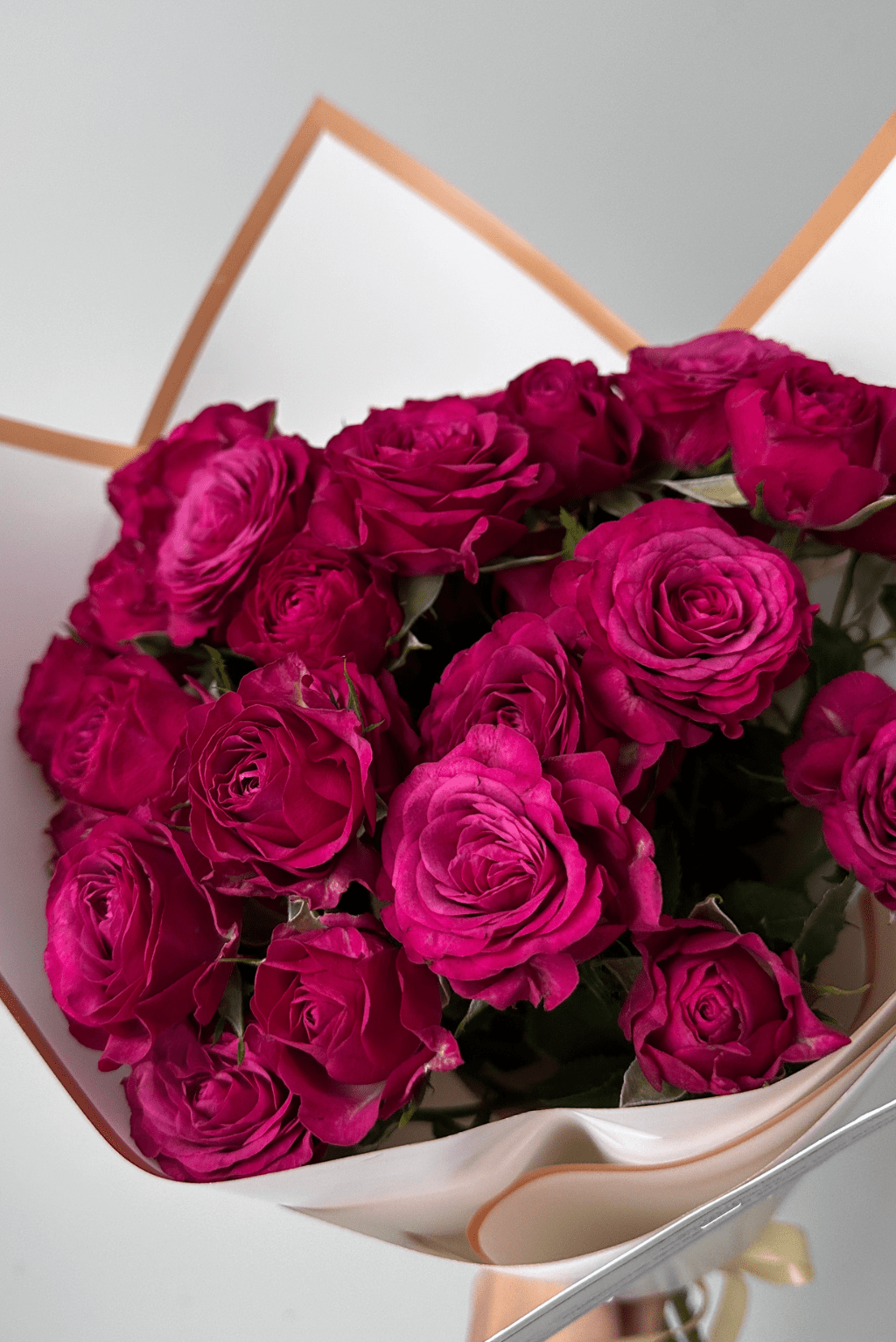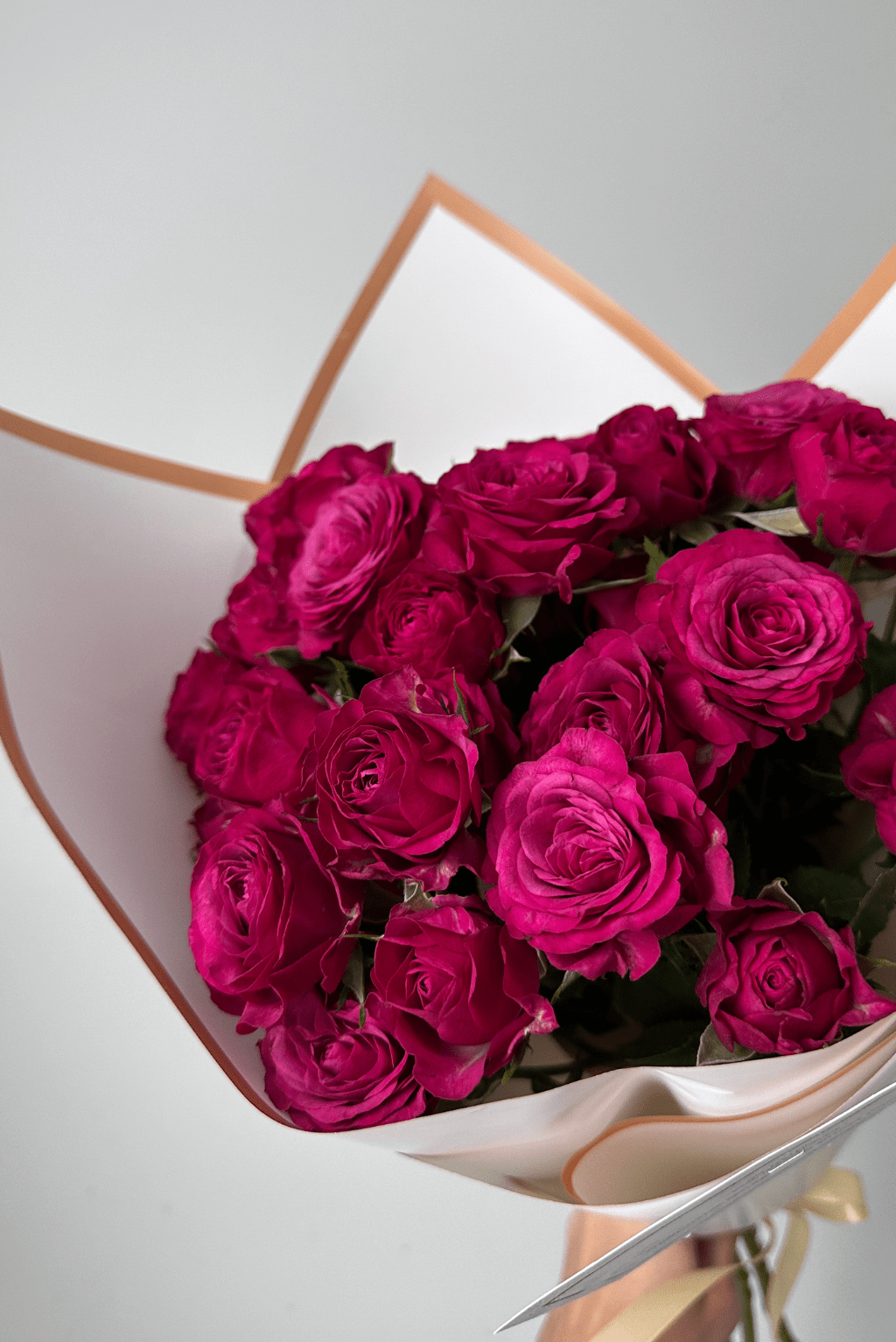 Prisirpusi, tamsiai rožinė spalva puikus rožių pasirinkimas - bet kuriai progai. Nuotraukoje matote 7 šakeles.